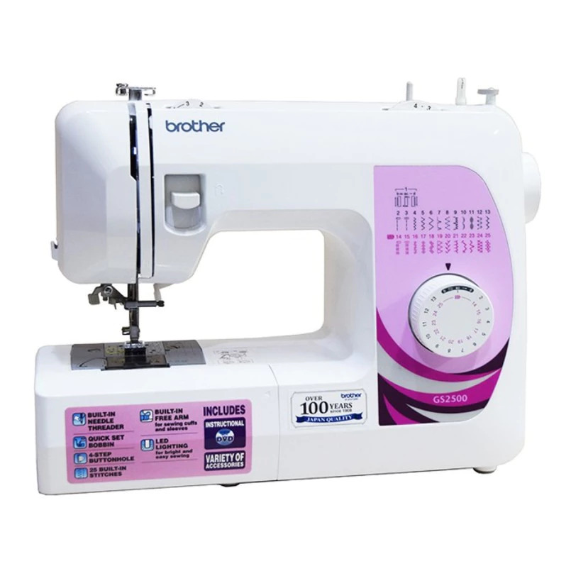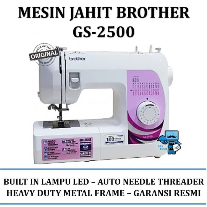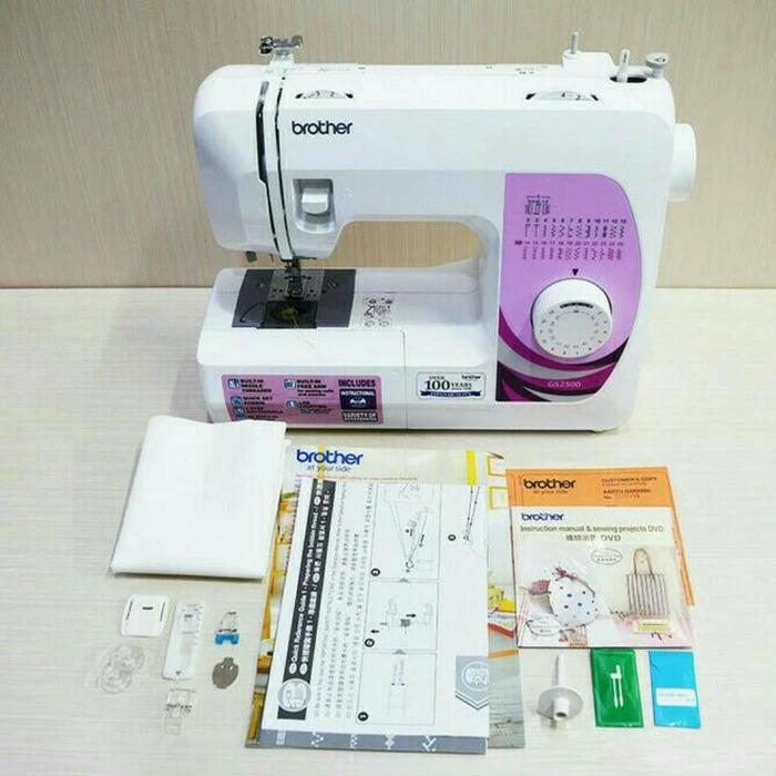 Mesin Jahit BROTHER GS 2500 adalah Mesin Jahit Portable dengan 25 Pola Fungsi Jahitan yang sangat mudah digunakan, sangat cocok bagi penjahit pemula hingga mahir yang mencari kemudahan dan keringkasan dalam menjahit, Fitur yang sangat mumpuni pada mesin ini memberikan banyak keuntungan bagi penggunanya Brand : BROTHER (Japan) Tipe : GS 2500 Kelas Mesin : Portable Multifungsi**tidak membutuhkan meja atau kaki tambahan untuk dapat dioperasikan Specification & Features : - 25 Fungsi Jahitan Built-In - Sistem Lobang Kancing 4 Langkah (4-Step Easy Buttonhole) - Sistem Bobbins-Atas (EASY Quick Set Bobbins) - Auto Needle Threader / Pemasuk Benang Ke Jarum Otomatis - Lever / Tuas Jahitan Mundur - 6 Row Feed Dog System (Gigi 6 Baris) untuk Kenyamanan saat bekerja dengan Bahan tipis hingga tebal - Fungsi Pengaturan Panjang Jahitan hingga 4.0 mm - Lebar Jahitan hingga 5.0 mm - Kecepatan Mesin hingga 800 s.p.m - Heavy Duty Metal Frame - In-Built LED Light - Free Arm untuk menjahit bahan tubular/silindris berbidang sempit - Pengaturan Tegangan Benang - In-Built Manual Thread Cutter (Pisau Pemotong Benang Manual - Eco-Friendly Motor (51 Watt) What's in the Box ??? 1* unit Mesin Jahit BROTHER GS 2500 1* In-Built BROTHER Motor 51 Watt 1* Pedal/Foot Controller & Cable Connector 1* Semi Hard Cover 1* Dust Cover 1* DVD Manual Instructions & Project Ideas 1* Booklet Instructions Manual (English) 1* Tool Kit Set BROTHER GS2500 (Buttonhole Foot, Zipper Foot, Button Sew Foot, Darning Plate, Spool Pin, Bobbins, Jarum, Jarum Kembar, dll.) 1* Kartu Garansi Resmi BROTHER Indonesia 3 Tahun